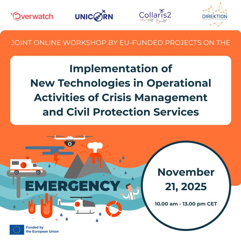 wir freuen uns, Ihnen mitteilen zu können, dass DIREKTION am 21. November 2025 gemeinsam mit OVERWATCH, UNICORN und COLLARIS2 einen Online-Workshop im Rahmen des Clusters Notfallmanagement organisiert.