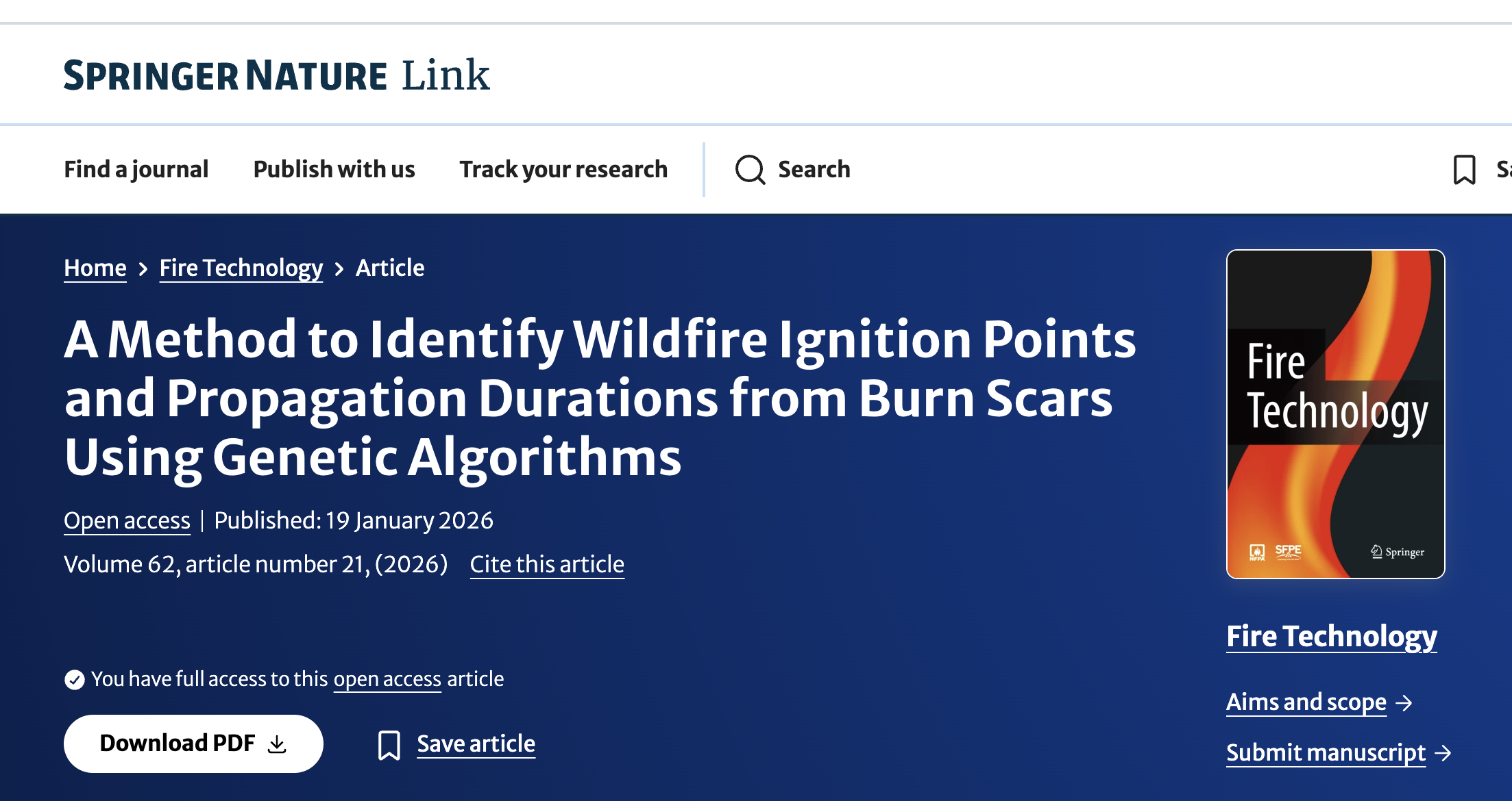 Cet article décrit une nouvelle méthode appelée Wildfire Source Genetic Algorithm (WSGA) qui permet d'estimer les points d'allumage et la durée de propagation d'un feu de forêt, à partir de la cicatrice d'un feu de forêt et des conditions environnementales utilisées comme données d'entrée pour un simulateur de feu de forêt fonctionnant à l'avance.Cet article utilise vingt cicatrices de feu de forêt générées à partir d'un simulateur de feu de forêt pour valider le WSGA, car leurs points d'allumage et leurs durées de propagation sont connus. Le WSGA génère des ensembles de points d'allumage et de durées de propagation, qui sont ensuite simulés et comparés à la cicatrice de brûlure d'entrée.