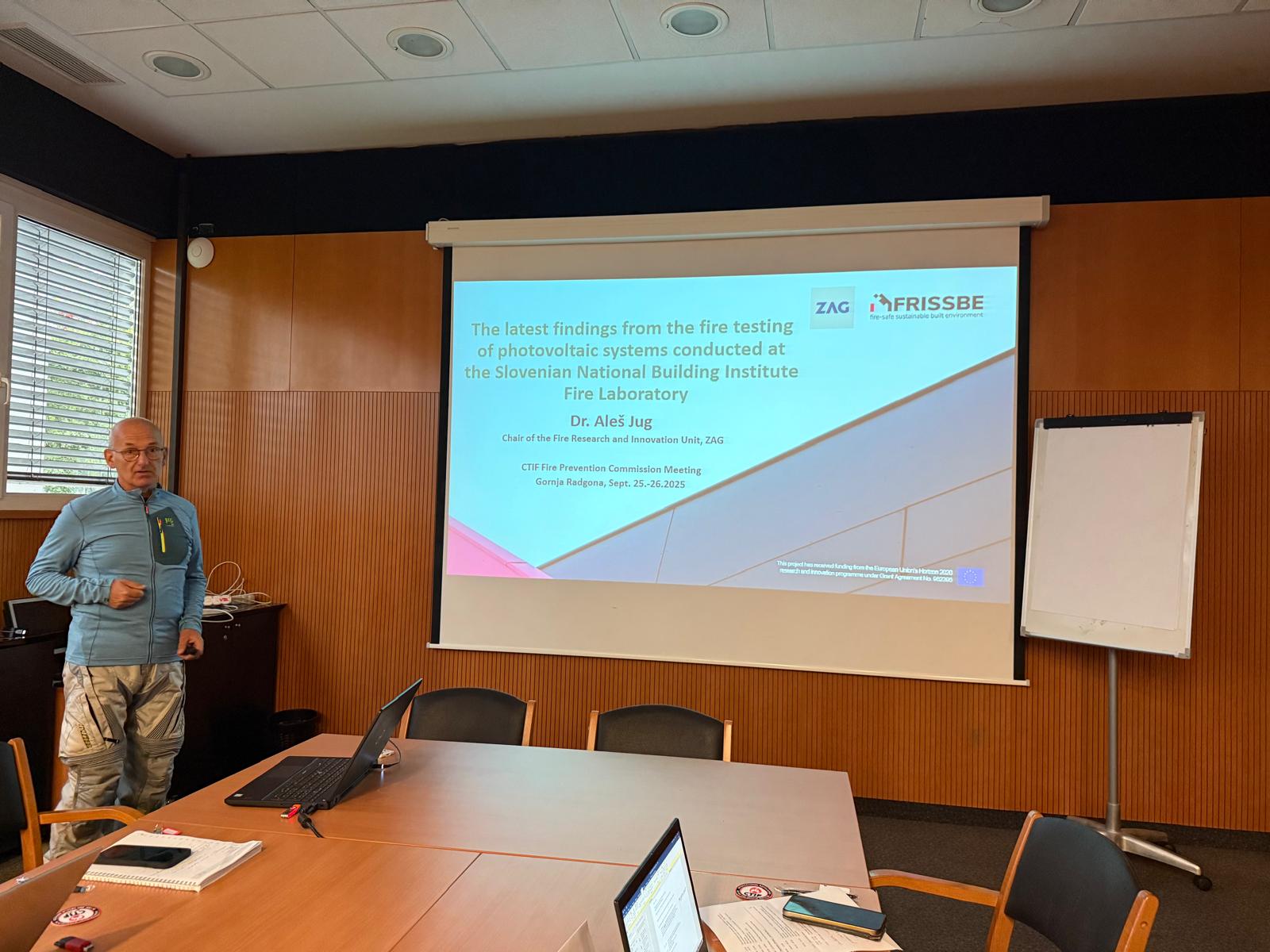 Following a short coffee break, Aleš Jug presented the latest results from fire testing of photovoltaic systems, carried out at the Fire Laboratory of the Slovenian National Building and Civil Engineering Institute.