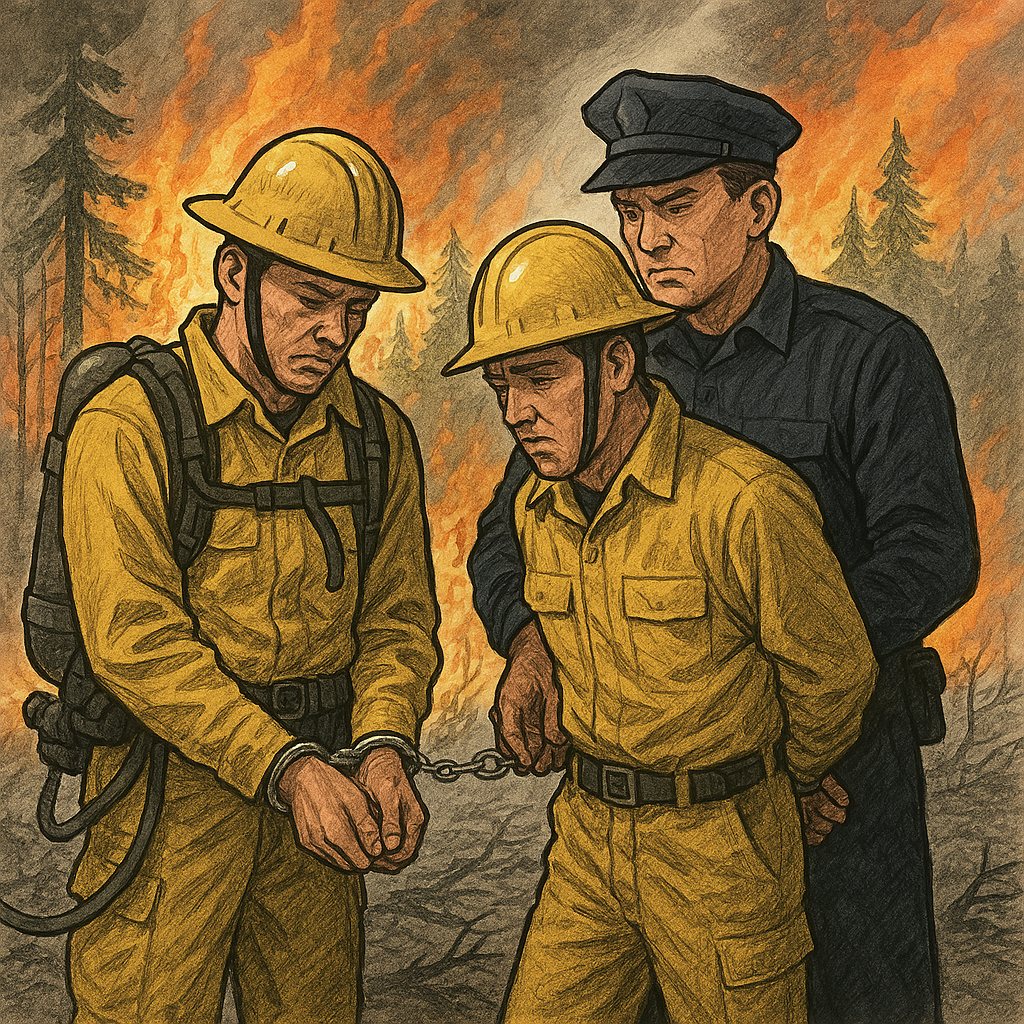 The incident occurred on August 28, when members of a private firefighting crew were reportedly detained by local law enforcement while working to contain a fast-moving blaze near a rural community. According to preliminary reports, the arrests stemmed from a dispute over access rights and operational authority on private land.